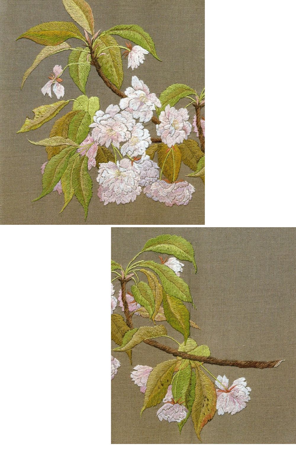 Yasuko Abe embroidery work: Yae-zakura (double cherry blossoms)