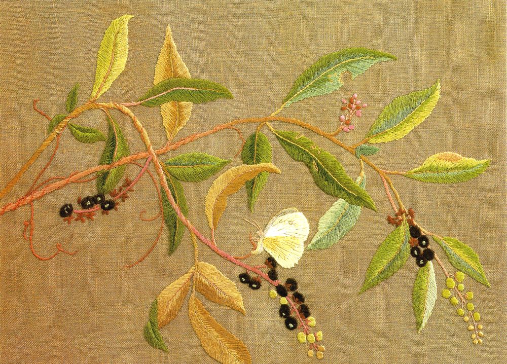 Yasuko Abe embroidery works: Inkberry, Pokeweed